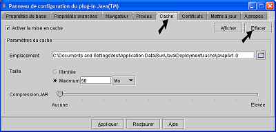 [démarrer] [Paramètres] [Panneau de configuration] [Java Plug-in] [Ouvrir avec le bouton droit de la souris] sélectionner [Cache] et puis [Effacer]. Voilà !